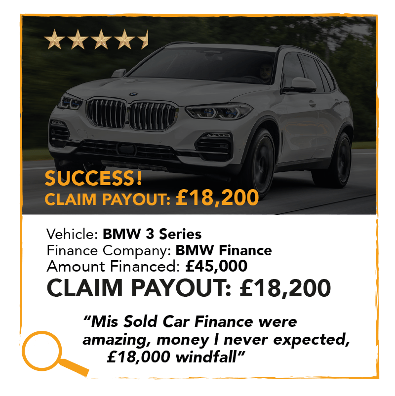 This depends on the amount that you financed and the APR, generally the higher the amount financed the larger the amount of claim. Whether you had a PCP or Hire Purchase our average pay-out on vehicles £25,000 and over is £13,500. Our average pay-out on vehicles under £25,000 is £8,300. Want to know how much your claim could be worth, Hit the button below and get a valuation in less than 10 seconds.